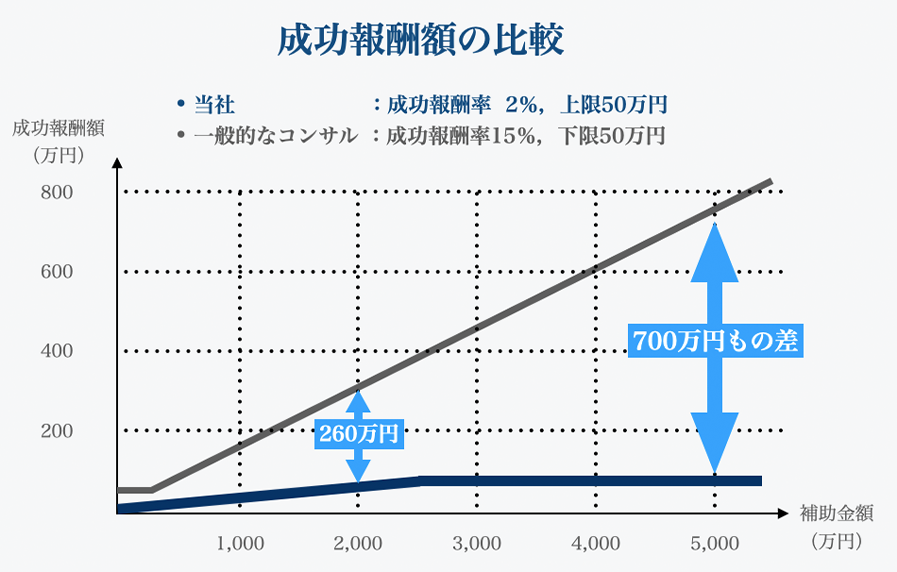 成功報酬 ・・・・ 補助金額の2% (上限50万円)